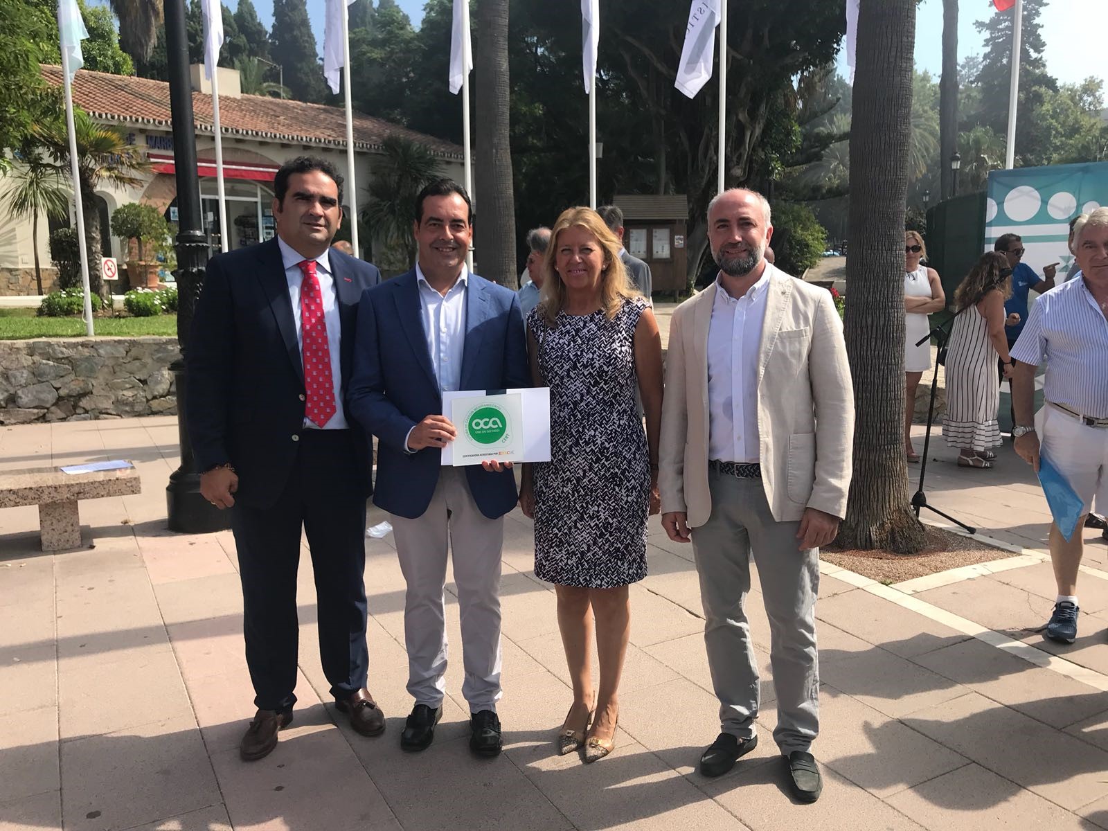 Hoy en la zona de acceso a la Oficina de Turismo de Marbella, el municipio ha recibido hasta para seis de sus playas( Marbella y San Pedro Alcántara) el distintivo Q de Calidad que otorga el ICTE( Instituto para la Calidad Turística Española). En el acto estuvieron presentes, entre otras autoridades, la alcaldesa de Marbella Angeles Muñoz y el concejal de Playas y consejero delegado de ACOSOL, Manuel Cardeña. Junto a las platas también se ha reconocido al monumento natural de Artola, con el certificado ISO de gestión medioambiental.