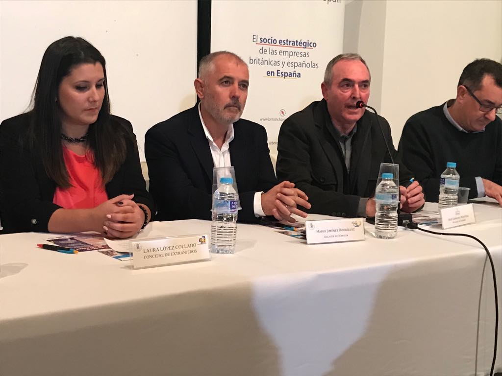 El nuevo embajador del Reino Unido en España, Hugh Elliot, ha visitado este miércoles oficialmente Manilva para participar en el V Manilva Brexit Seminar, un evento organizado por el área de Extranjeros del Ayuntamiento de Manilva y en el que han colaborado los Ayuntamientos de Casares y Sna Roque. Elliot llamó a la calma al colectivo británico que vive en la Costa del Sol «aunque puedo entender la incertidumbre que existe entre sus miembros». El diplomático aseguró que las relaciones entre ambos países se hacen más que necesarias teniendo en cuenta que casi 350.000 británicos residen en España y que alrededor de 200.000 españoles lo hacen en Gran Bretaña….Hay colaboración en políticas de todo tipo, de seguridad y también relacionadas con otras áreas como el cambio climático, de hecho, Madrid acogerá la Cumbre del Clima el próximo mes y nosotros lo haremos en Escocia el próximo año…A pesar de la posible salida de Reino Unido de la UE mi país seguirá manteniendo lazos profundos con España en sectores como el comercial, el educativo y el turístico”. A nivel local agradeció la labor de los Ayuntamientos en cuanto a la atención a la comunidad británica «lo que demuestra que la integración es plena desde hace décadas y esos vínculos no se pueden perder».