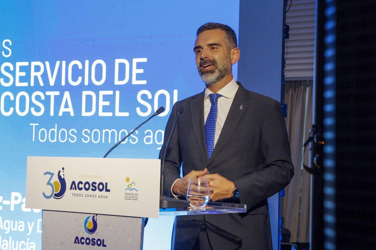 El consejero ha resaltado el avance y evolución de Acosol al frente de una comarca tan grande y habitada en la provincia de Málaga como es la Costa del Sol. Sobre el 30 aniversario de Acosol, Fernández-Pacheco ha agradecido el compromiso que esta empresa ha demostrado durante estos años con la modernización de las infraestructuras hidráulicas, la mejora continua de los servicios prestados a los ciudadanos y el desarrollo de políticas de eficiencia hídrica. Un agradecimiento y una felicitación que ha hecho extensible a todo el equipo directivo y a sus trabajadores, “responsables de un trabajo bien hecho, que convierte a esta entidad en ejemplo de gestión eficiente y sostenible del agua en nuestra comunidad”.