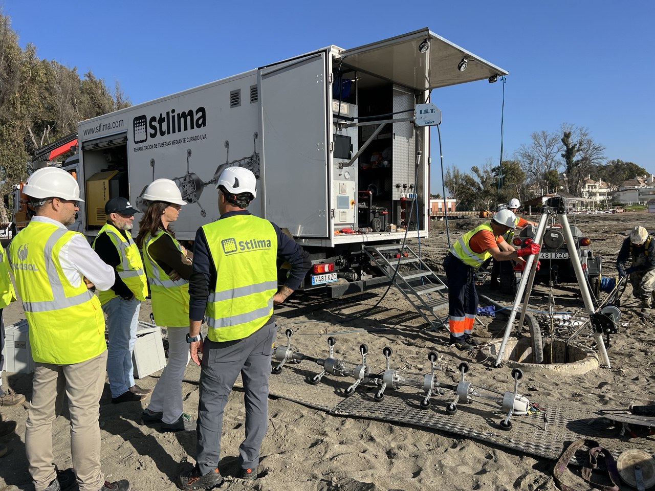 Los trabajos han consistido en la instalación de un revestimiento interior de la tubería existente con manga de fibra de vidrio y curado con luz ultravioleta, además de la limpieza previa de la tubería, en 19 tramos diferentes. Con esta actuación se ha logrado un doble objetivo: reforzar la estabilidad estructural del colector, de hormigón armado con camisa de chapa y con una antigüedad de más de 40 años, y reducir la intrusión de agua de mar a través de varios tramos de la tubería. Esto ha permitido reducir la conductividad por debajo de los 2.000 uS/cm, cuando hasta el momento llegó a superar los 9.000 uS/cm.