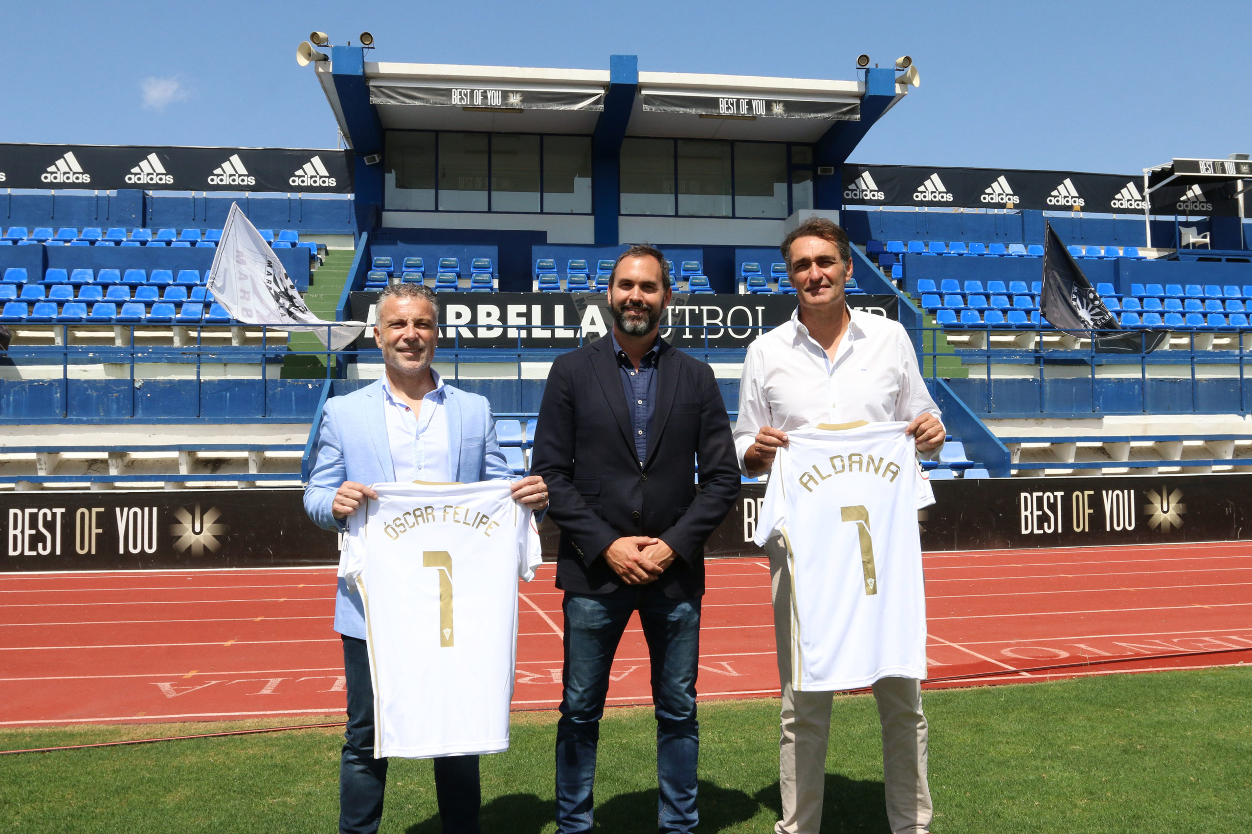 El director general del Marbella F.C., Héctor Morales, ha presentado este martes al nuevo director de la cantera, Adolfo Aldana, y al nuevo director adjunto y de metodología de fútbol base, Óscar Felipe, con cuya incorporación se quiere situar a la cantera como “uno de los pilares estratégicos del club”.