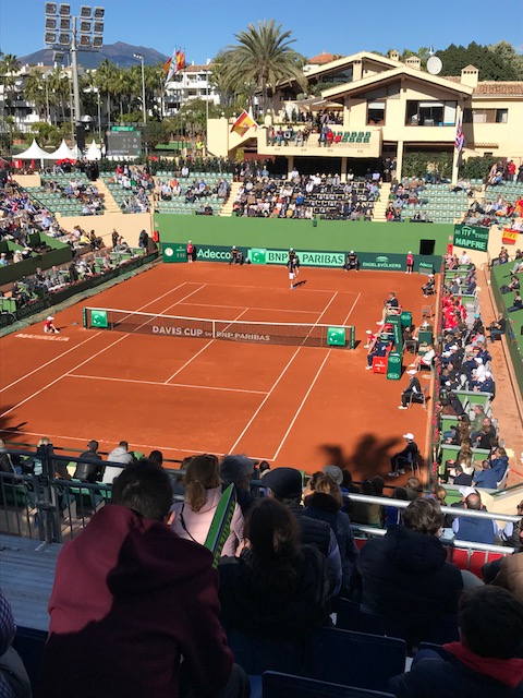 No fue fácil pero Ramos trabajo lo suyo en su estreno en la Copa Davis, donde también debutaba el capitán Sergi Bruguera. A destacar el gran aspecto de las gradas de la pista central de Puente Romano. Con capacidad para personas estaban casi llenas. Y brillaron con sus colores, cánticos y ambiente los supporters Uk. En ese aspecto buena promoción turística indudable para Marbella.