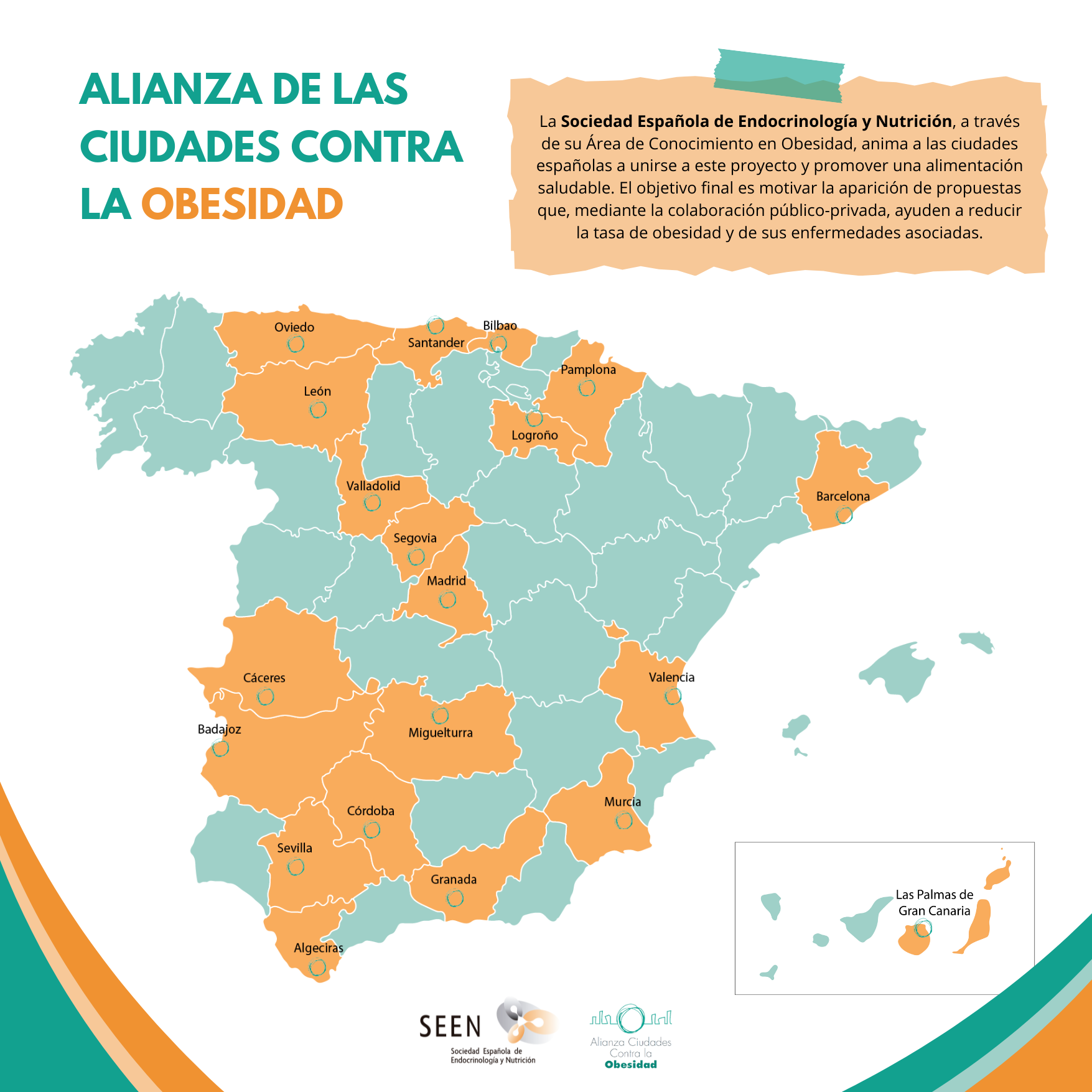 Esta alianza promueve la colaboración estrecha entre las autoridades locales, la comunidad científica, la sociedad civil y el sector privado de las ciudades españolas en el diseño de proyectos urbanos que promuevan tanto la alimentación saludable como la actividad física regular.