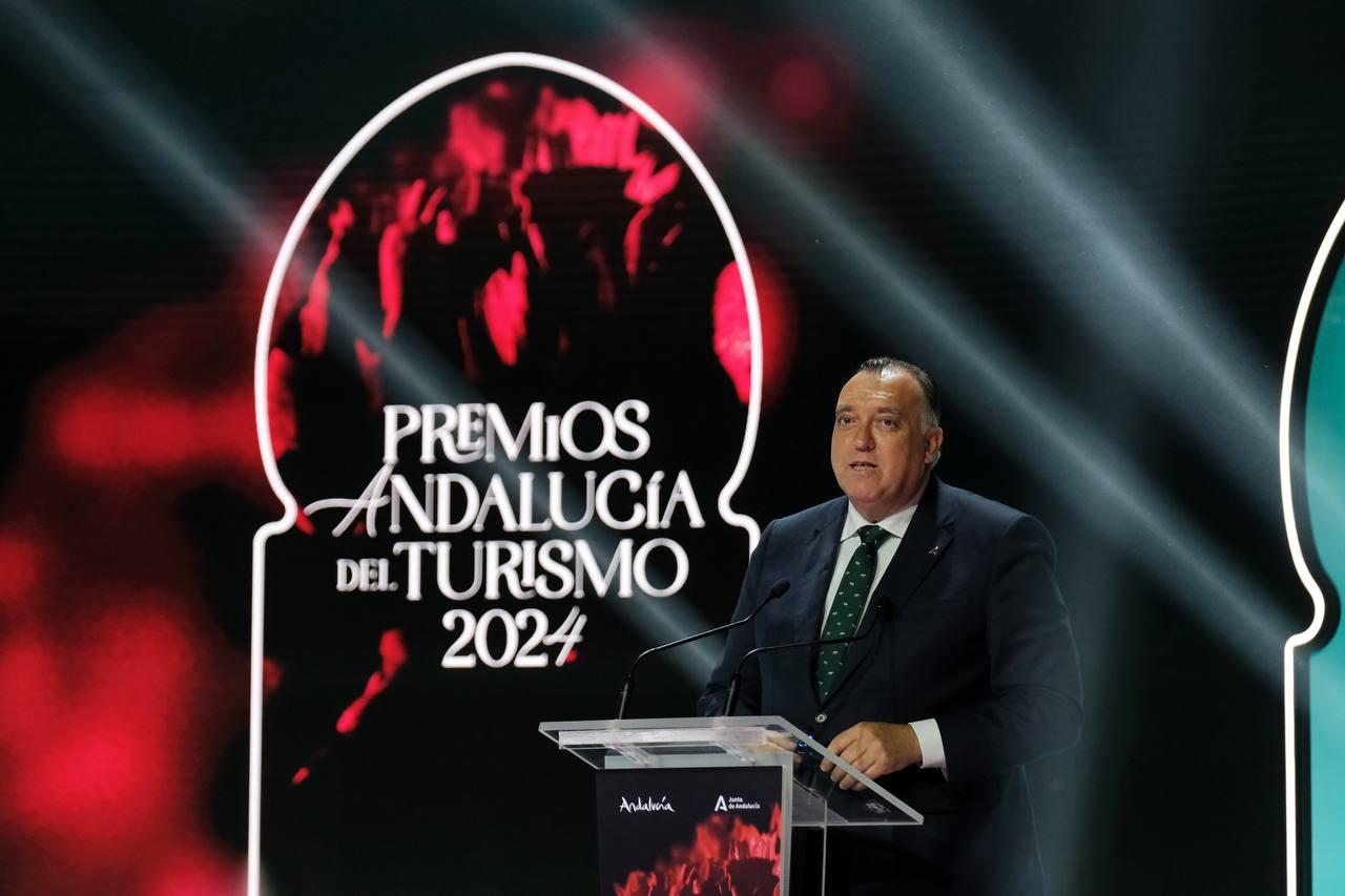 El consejero de Turismo y Andalucía Exterior, Arturo Bernal, en la gala de entrega de los Premios Andalucía del Turismo celebrada en Carmona (Sevilla), ha subrayado hoy el objetivo del Gobierno regional por avanzar en el desarrollo de la industria turística de la comunidad situando a la sostenibilidad social de esta actividad como eje que garantice su futuro.