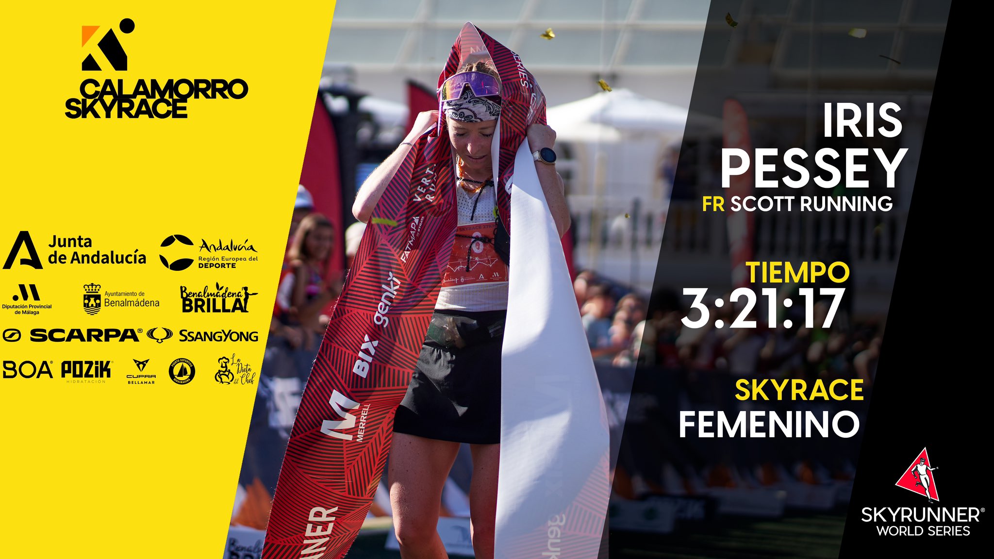 Antonio Martínez (España) del equipo Scarpa e Iris Pessey(Francia), del equipo Scott Running, se proclaman ganadores de la primera prueba de las Series Mundiales de Skyrunning tras una dura carrera de 27.5km y un desnivel positivo de 2.270 metros. Lo han hecho con un tiempo de 2:39:01 y 3:21:17 respectivamente. Las altas temperaturas han contribuido a que la dureza de la prueba sea mayor. La segunda posición masculina ha sido para Daniel Osanz (España), del equipo Adidas Terrex y la femenina para Marcela Vasinova(República Checa) del equipo. En tercera posición han llegado Fredéric Tranchand (Francia) del equipo Scott Running e Ikram Rharsalla (España) del equipo Millet.