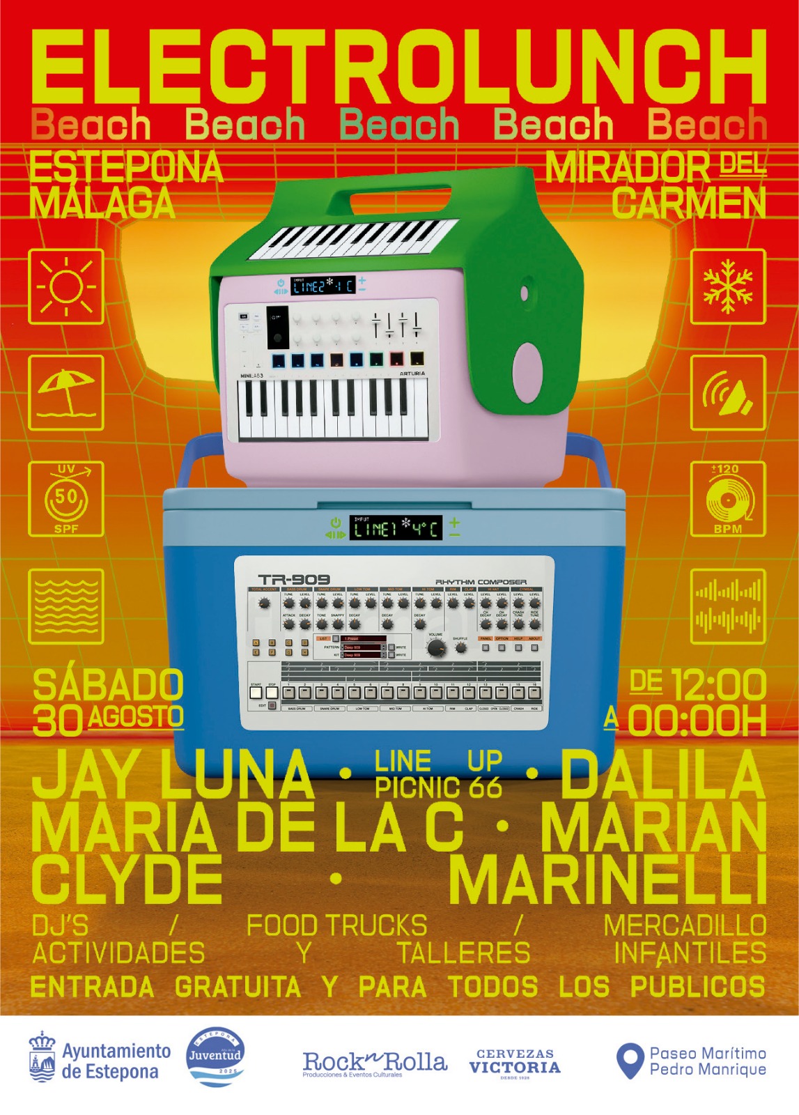 El Ayuntamiento de Estepona informa que este sábado, 30 de agosto, el entorno del Mirador El Carmen acogerá el ‘Electrolunch’,