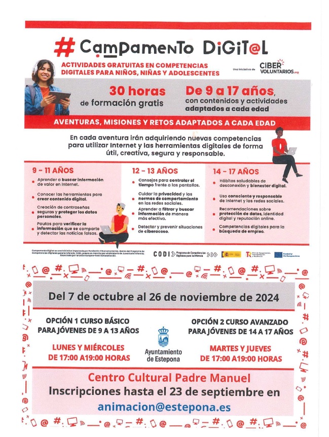 El Ayuntamiento de Estepona informa que está abierto el plazo de inscripción en el Campamento Digital que se llevará a
