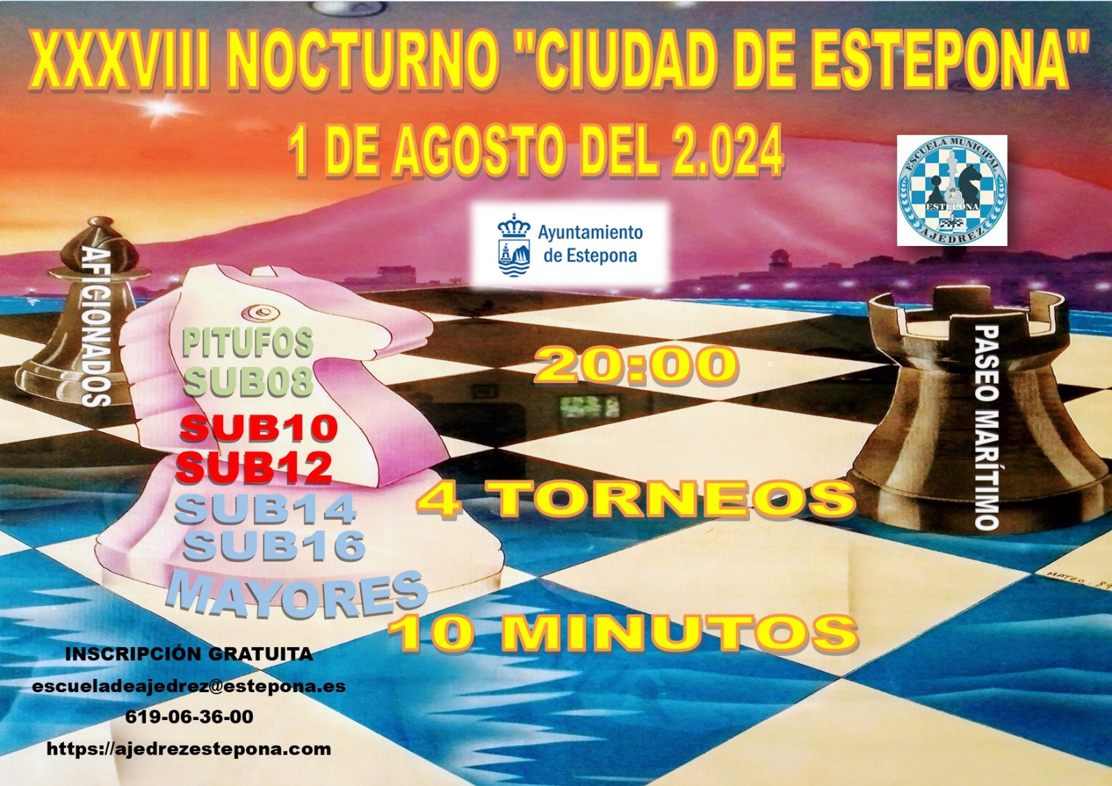 El ILMO. AYUNTAMIENTO DE ESTEPONA, Y la CONCEJALÍA DE DEPORTES DE ESTEPONA, junto a la ESCUELA MUNICIPAL DE AJEDREZ DE