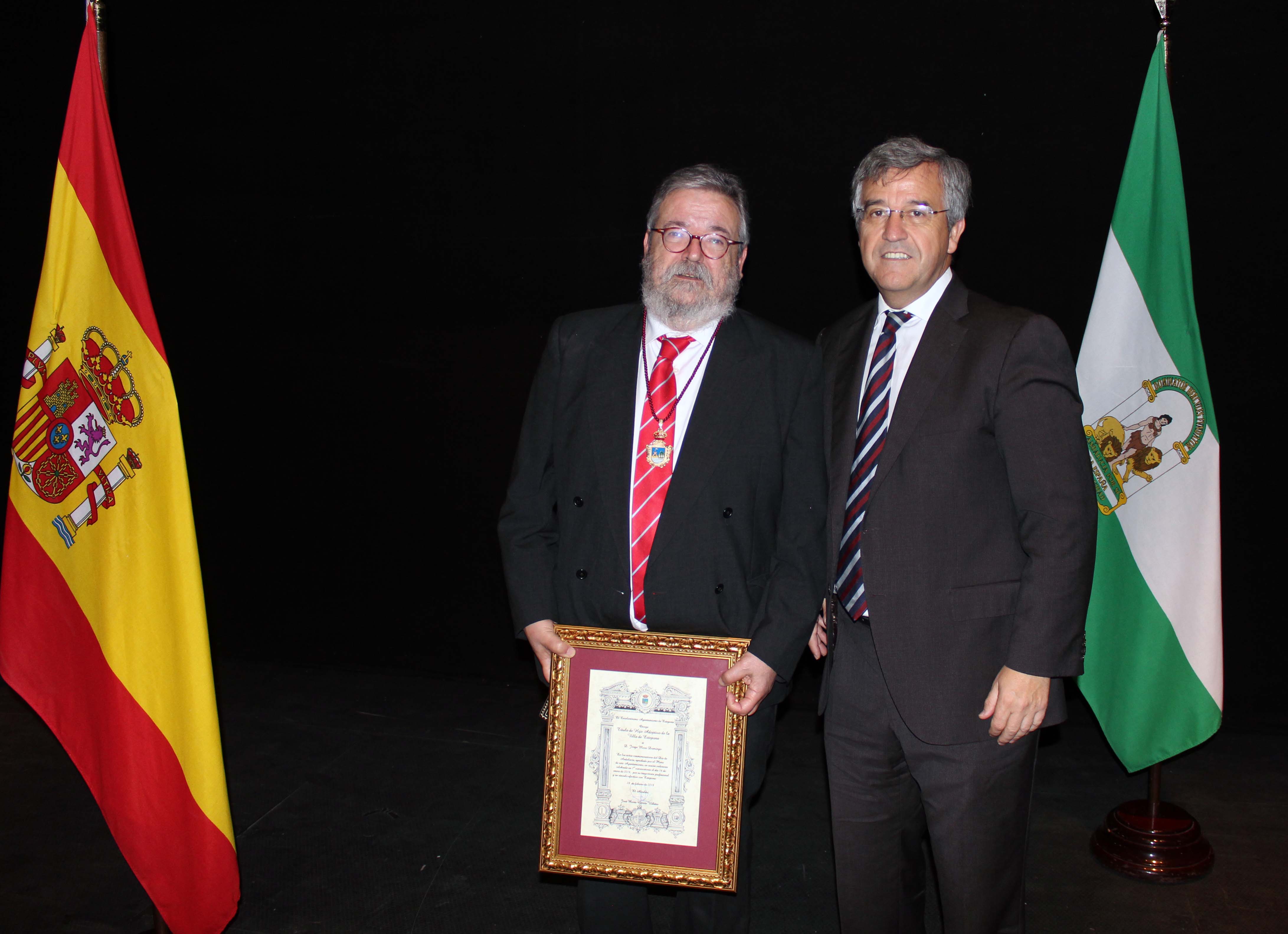 El Ayuntamiento de Estepona ha celebrado hoy el acto institucional del Día de Andalucía con el nombramiento de Hijo Adoptivo de la ciudad de Estepona a Jorge Moro Domingo por su estrecha vinculación con el municipio, donde ejerce su labor como notario desde el año 1996.