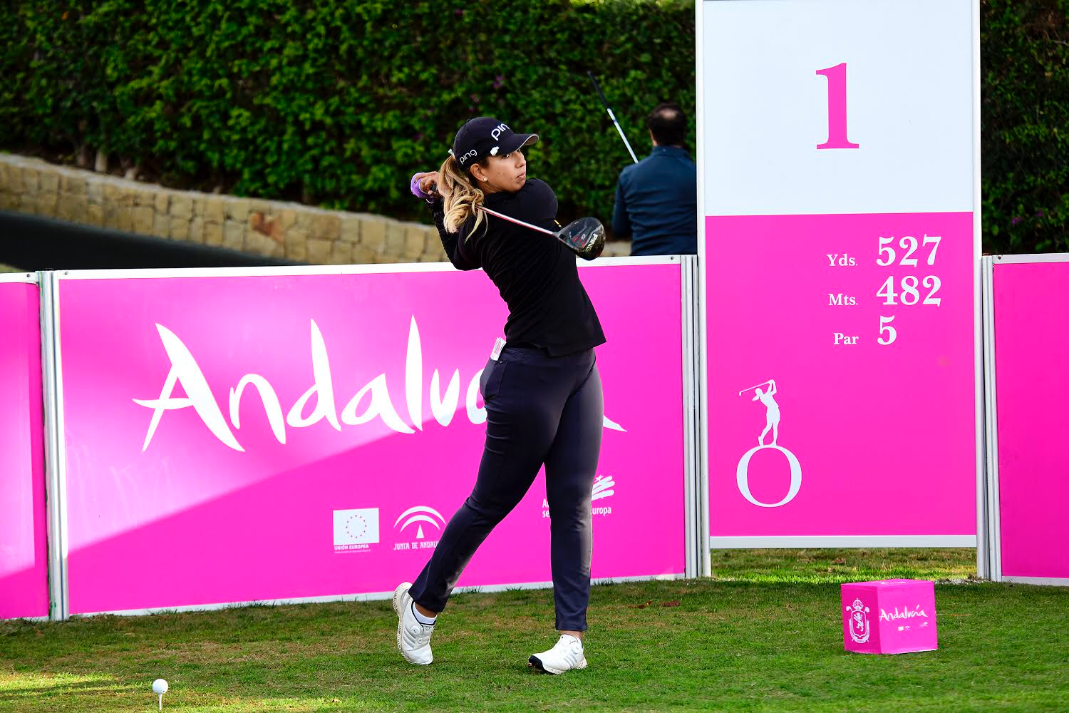 única vez que lo sacó a relucir fue la profesional que más metros alcanzó en la competición de drive más largo celebrada el miércoles en la terraza de Aloha Golf Club.