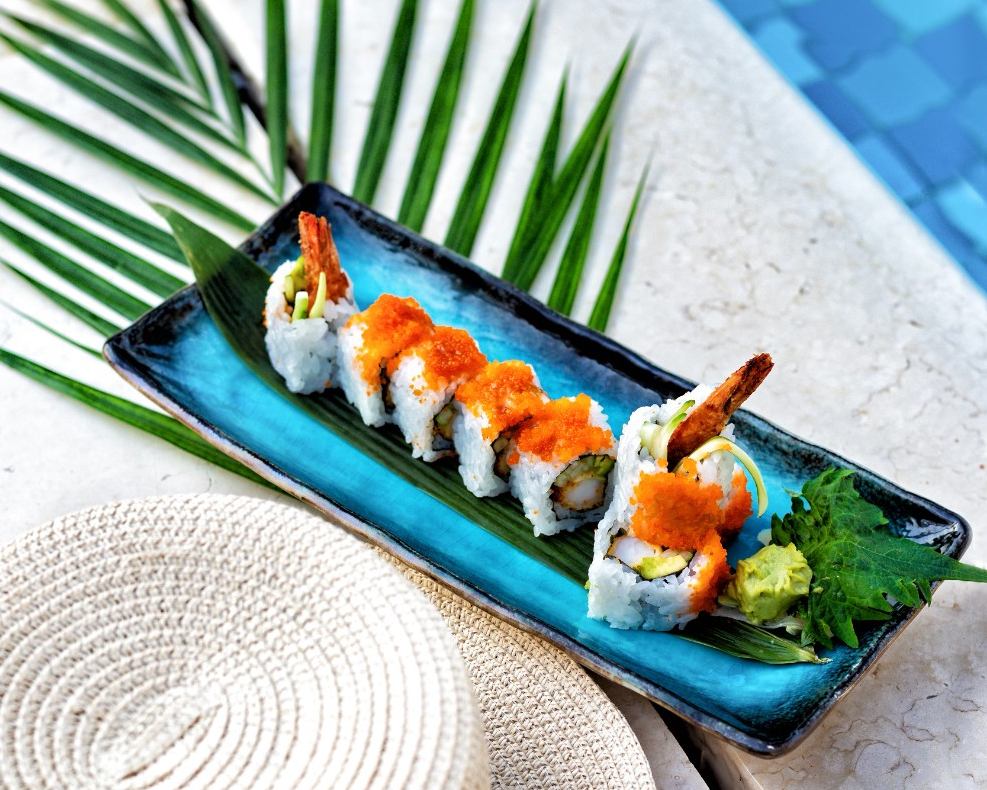 En cuanto a la propuesta de food and beverage, Azure Beach propone una oferta gastronómica divertida y apetecible que hará las delicias de todos los paladares. Ensaladas, pizzas y bocados perfectos para compartir, se completarán con la especialidad del chef: el sushi.