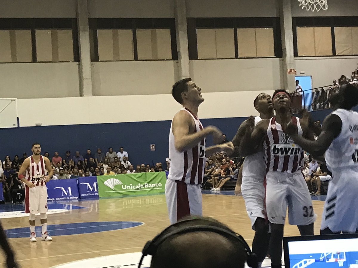 la pista (11 puntos y 7 rechaces) el asunto pintaba distinto. El Olympiacos acusó el esfuerzo del día anterior ante el Unicaja le hizo ir a menos, a lo que se unió la lesión de su mejor hombre hasta ese momento, LeDay. Intentaron reaccionar pero un parcial de 16-0 sentenció todo. Al final victoria blanca por 80-69 con Thompkins (14) y Toupane (17) como máximos anotadores. El público se lo pasó a lo grande. El éxito de la Diputación Provincial de Málaga y el Ayuntamiento de Manilva ha sido total al traerse el encuentro a este último paraíso de la Costa del Sol.