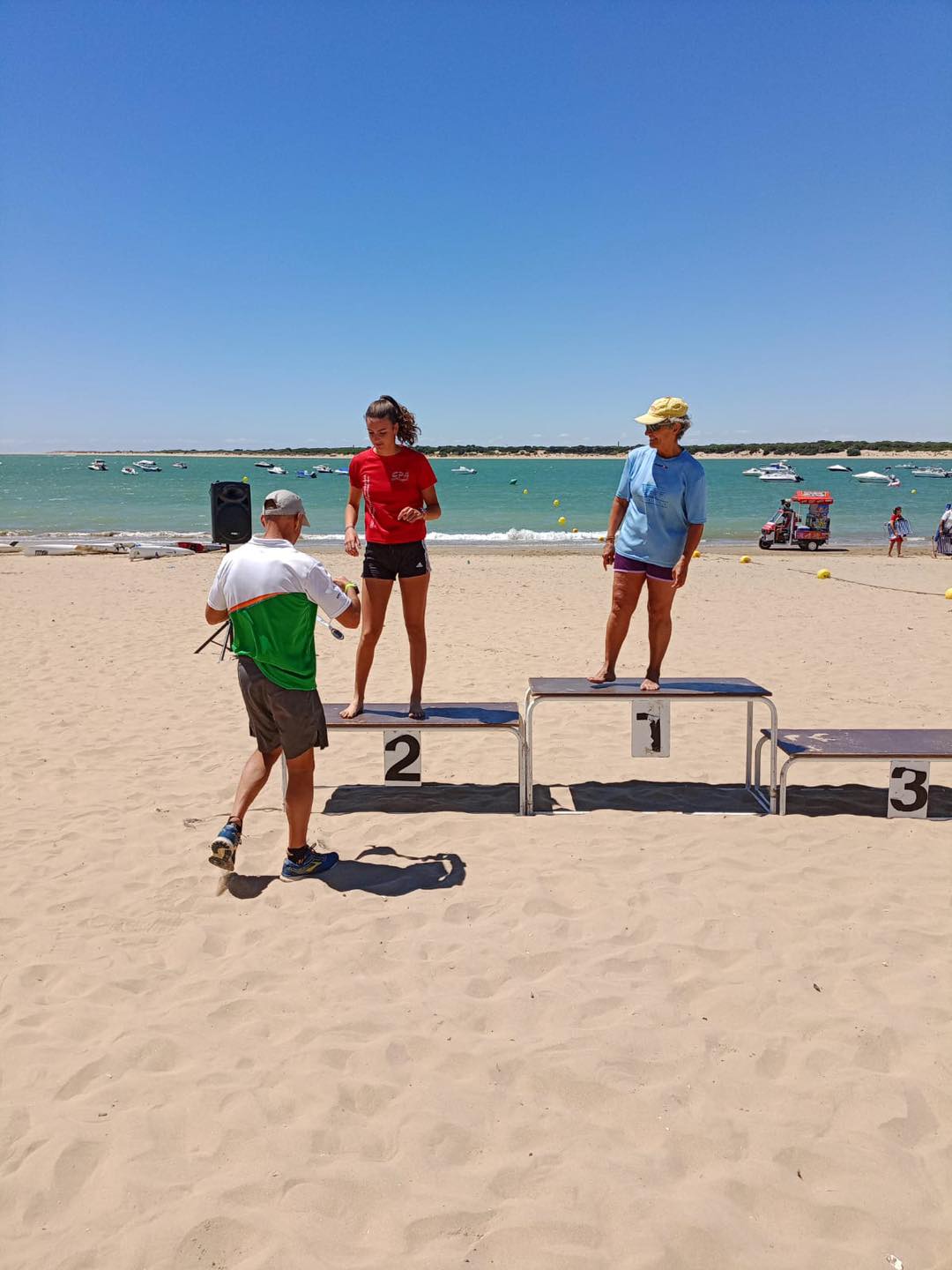 La primera prueba tuvo su salida a las 11.30, correspondiente al KAYAK TRADICIONAL. Sobre un recorrido de 8 kms y un mar algo rizado, con viento y oleaje lateral, José Manuel obtuvo el tercer puesto en la categoría Veterano May.55, con un crono de 47m 53sg.