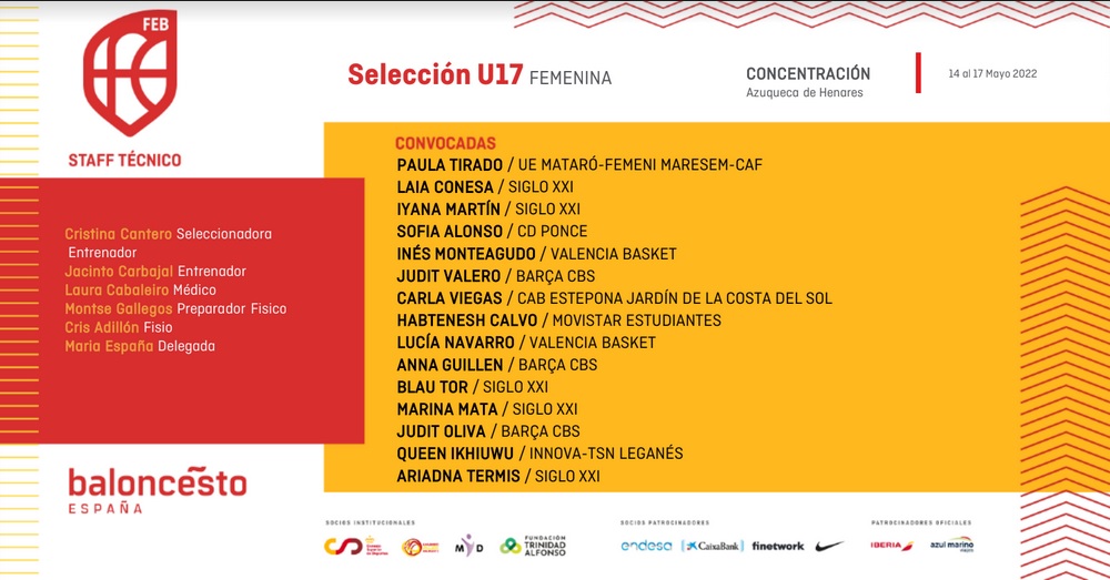 La convocatoria se desarrollará entre el 14 y el 17 de mayo en Azuqueca de Henares (Guadalajara), donde la Selección Española U17 aprovechará estas fechas para seguir trabajando con jugadoras que desde la FEB tienen en cuenta para futuras convocatorias estivales para defender a la Selección Española en torneos oficiales, en este caso la Copa del Mundo de Hungría que se celebrará del 9 al 17 de julio. Las jugadoras estarán bajo las órdenes de Cristina Cantero, entrenadora de Celta Zorka Recalvi, que contará con Jacinto Carbajal (Recoletas Zamora) como ayudante, ambos entrenadores de LF Challenge y que conocen bien a Viegas. Otra excelsa triplista como María España, jugadora de Liga Femenina Endesa con IDK Euskotren esta última temporada, ejercerá de delegada.