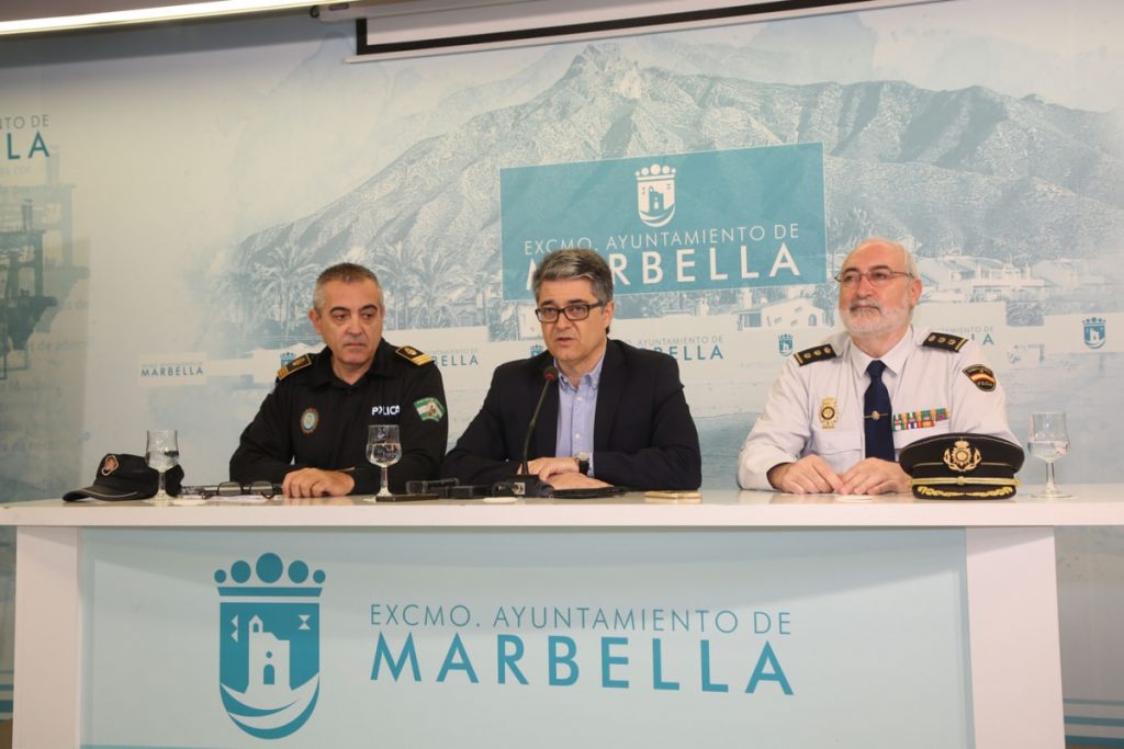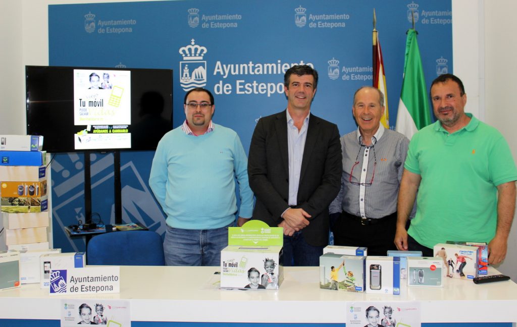 El teniente alcalde del área de Nuevas Tecnologías, José María Ayala, y representantes del colectivo ‘Estepona y sus voluntarios’ han