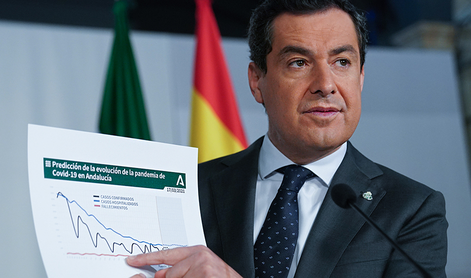 El presidente de la Junta de Andalucía, Juanma Moreno, ha anunciado este miércoles las nuevas medidas para contener la pandemia,