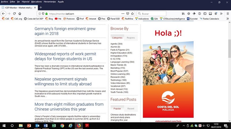 Los alojamientos hoteleros andaluces sumaron 12,5 millones de estancias entre junio y julio, +3,2% con respecto a 2018