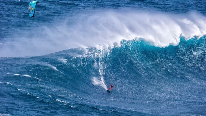 Gisela Pulido «gana» a su primera ola gigante, la «Jaws», en Hawai
