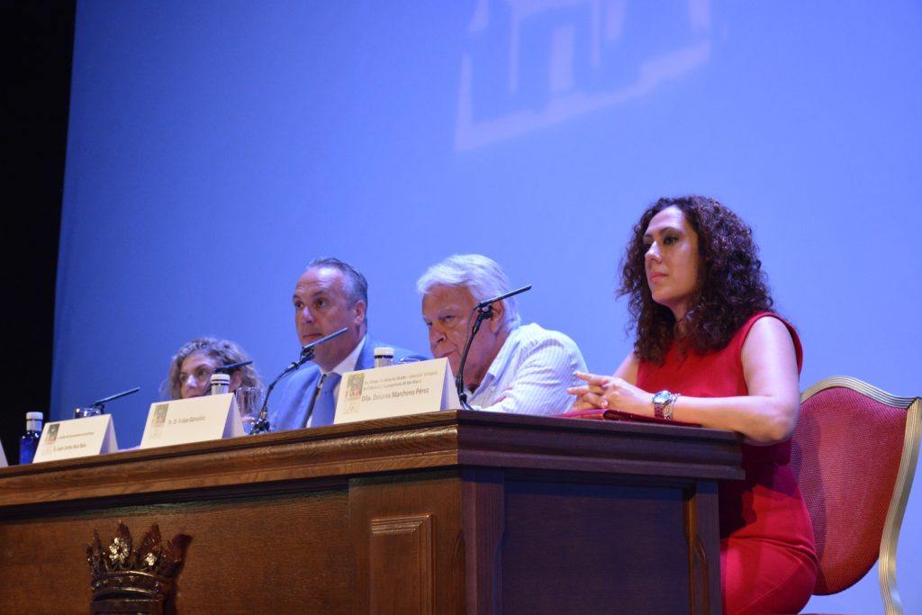 El expresidente del Gobierno Felipe González ha ofrecido hoy, lunes, en el Teatro Juan Luis Galiardo la conferencia inaugural del