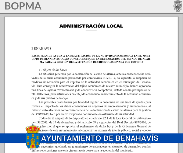 En el BOPMA del miércoles 5 de mayo se ha publicado el edicto del Ayuntamiento de Benahavis para la convocatoria