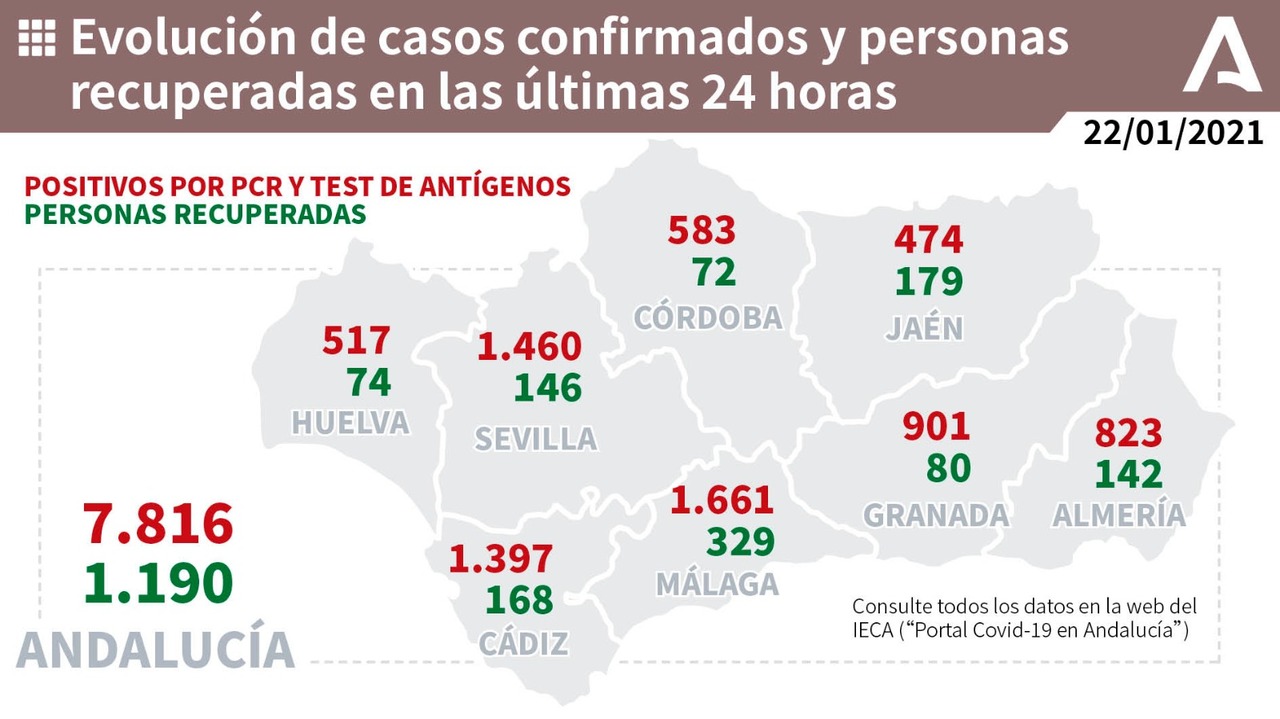 Según los datos de la Consejería de Salud y Familias de la Junta de Andalucía continúa al alza el Coronavirus