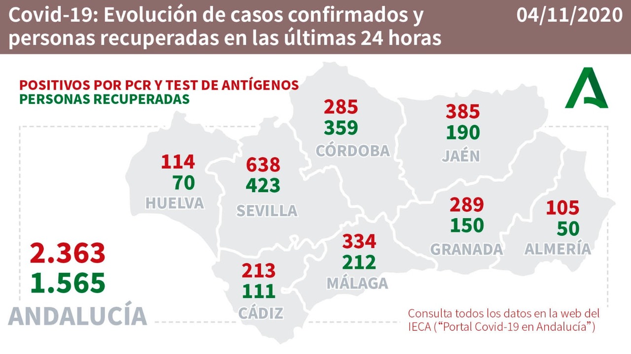 Según los datos de la Consejería de Salud y Familias de la Junta de Andalucía, hoy miércoles se contabilizan dos