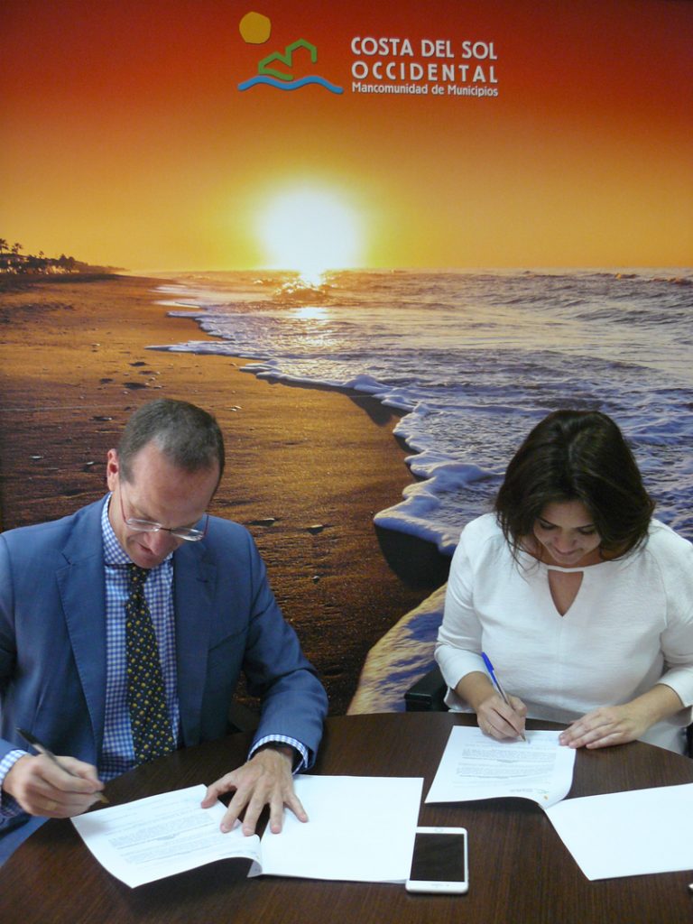 Margarita del Cid, presidenta de la Mancomunidad de Municipios de la Costa del Sol Occidental, y Ángel Hervella Touchard, director
