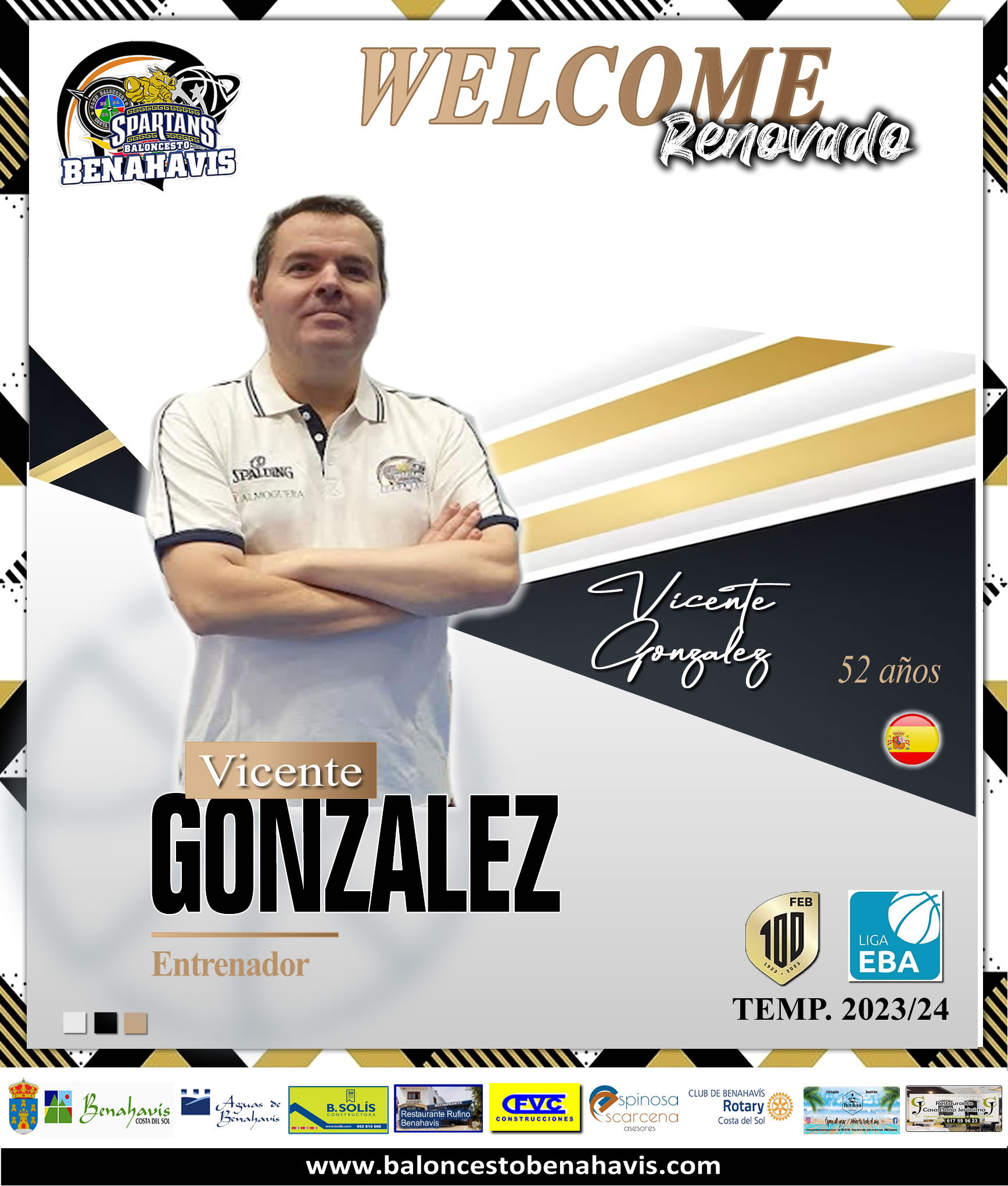 Vicente González renueva como entrenador del CB Benahavís Costa del Sol, Liga EBA Temp.23/24. El entrenador Vicente González, que lograba