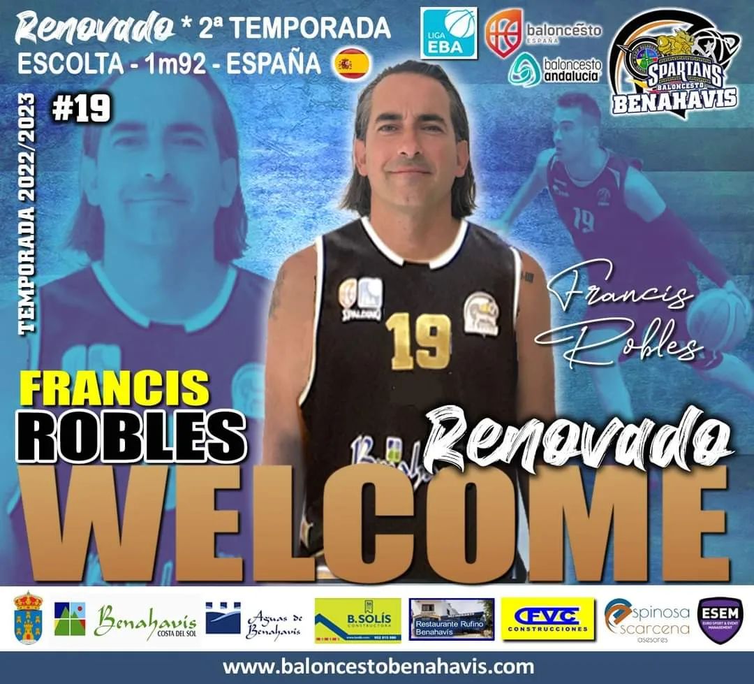 En una nota de prensa el CB Benahavis ha anunciado la renovación del veterano jugador Francis Robles. Será su segunda