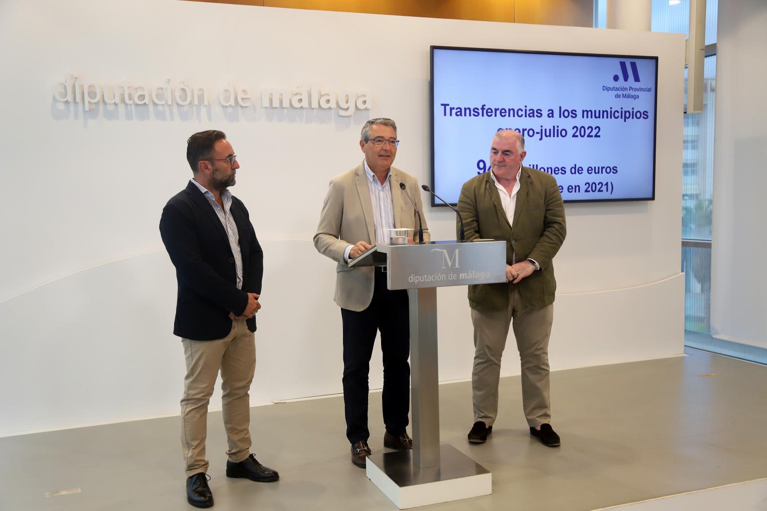 La Diputación de Málaga incrementa un 30% las transferencias a los municipios en el período enero-julio