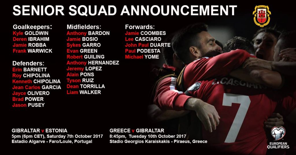 La Federación de Fútbol de Gibraltar( GFA ) ha dado a conocer hoy la preconvocatoria de jugadores para los dos