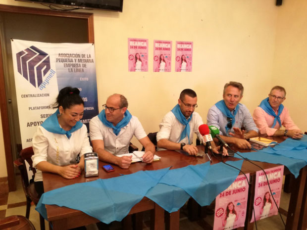 El alcalde, Juan Franco, y el concejal de Comercio, Jaime Chacón, junto al presidente de Apymell, Lorenzo Pérez-Periáñez, y responsables