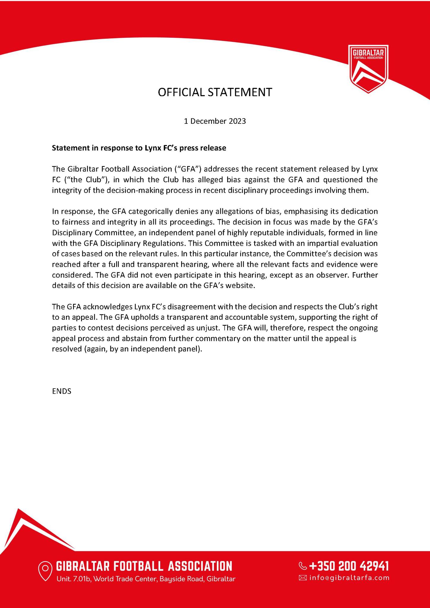 24 horas después de haber emitido el propietario del Lynx FC, Albert Parody, una carta pública donde se quejaba del
