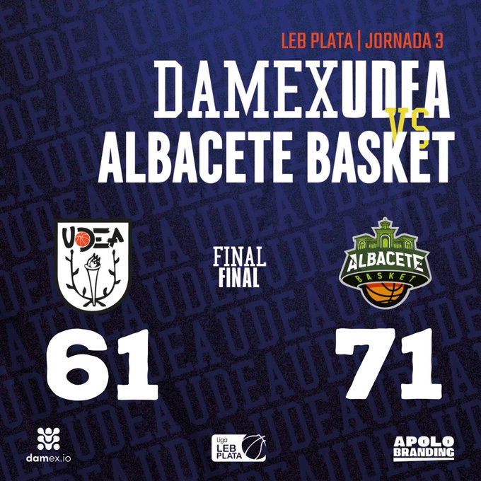El Damex Udea busca este sábado su primera victoria en Liga, frente a Bueno Arenas Albacete Basket, tras haber perdido