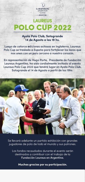 La 15ª Edición del evento benéfico de la Laureus Polo Cup se celebrará el domingo 14 de agosto en el
