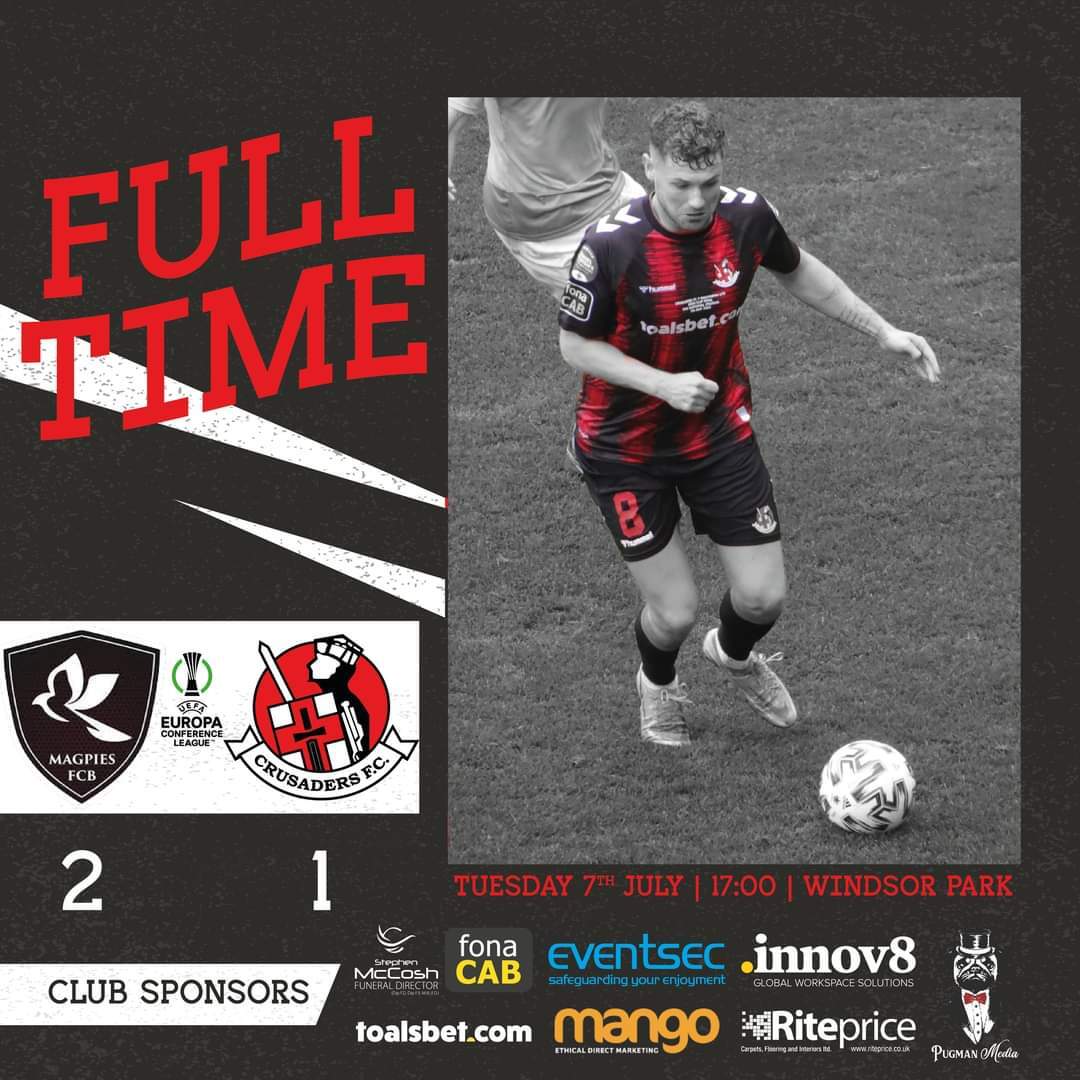 Excelente imagen del FC Bruno´s Magpies en su debut europeo. Una victoria justa ( 2-1 ) ante el Crusaders( Irlanda