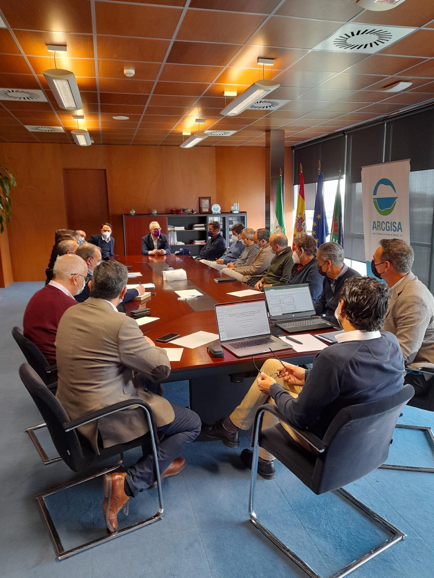 El Presidente de la Mancomunidad, Juan Lozano, junto al Director General de ARCGISA y otros responsables de la empresa pública,