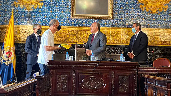 El alcalde de Algeciras y presidente del Ramal Central Ferroviario, José Ignacio Landaluce, ha dado la bienvenida al presidente del