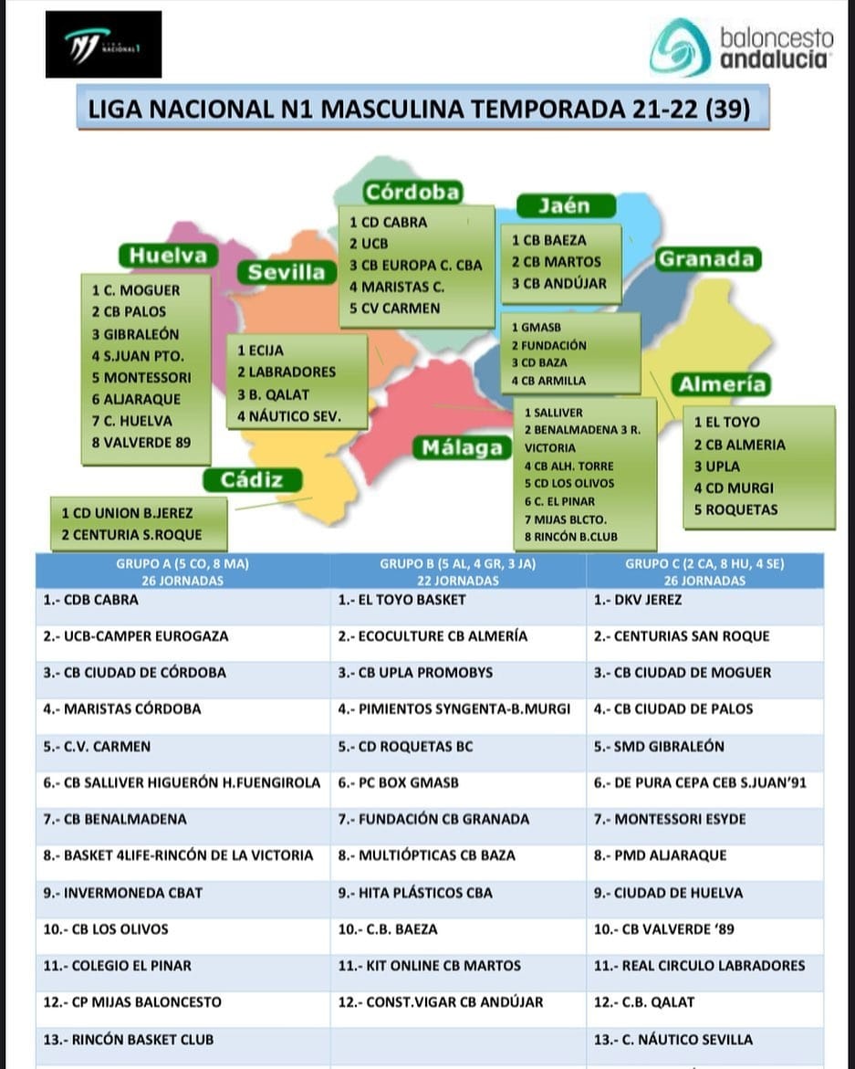 D La Federación Andaluza de Baloncesto ha dado a conocer el grupo C de la Primera Nacional Andaluza de Baloncesto,