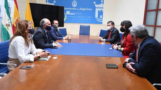 El alcalde de Algeciras, José Ignacio Landaluce, junto a la concejal delegada de Economía y Hacienda, María Solanes, ha recibido