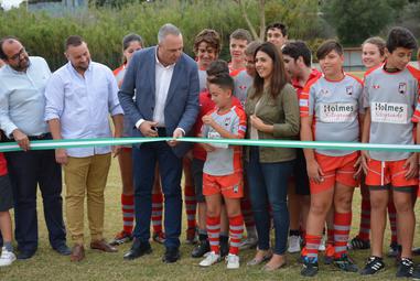 Autoridades municipales y directivos y jugadores del Club de Rugby del Estrecho inauguraron en la tarde de ayer, viernes, la