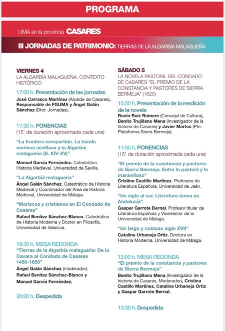 El Ayuntamiento y la Fundación General de la Universidad de Málaga organizan “Tierras de la Algarbía malagueña: de la Caxara