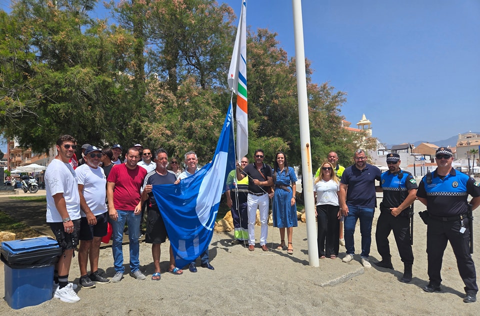 Mario Jiménez, alcalde de Manilva, acompañado de los concejales Gema Zotano( Playas ), Agustín Vargas( Turismo ) y Eva Galindo