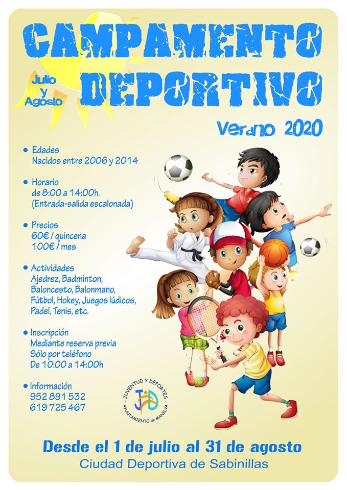 El área de Deportes del Ayuntamiento de Manilva ha anunciado que habrá un Campus Deportivo Verano 2020, que se desarrollará