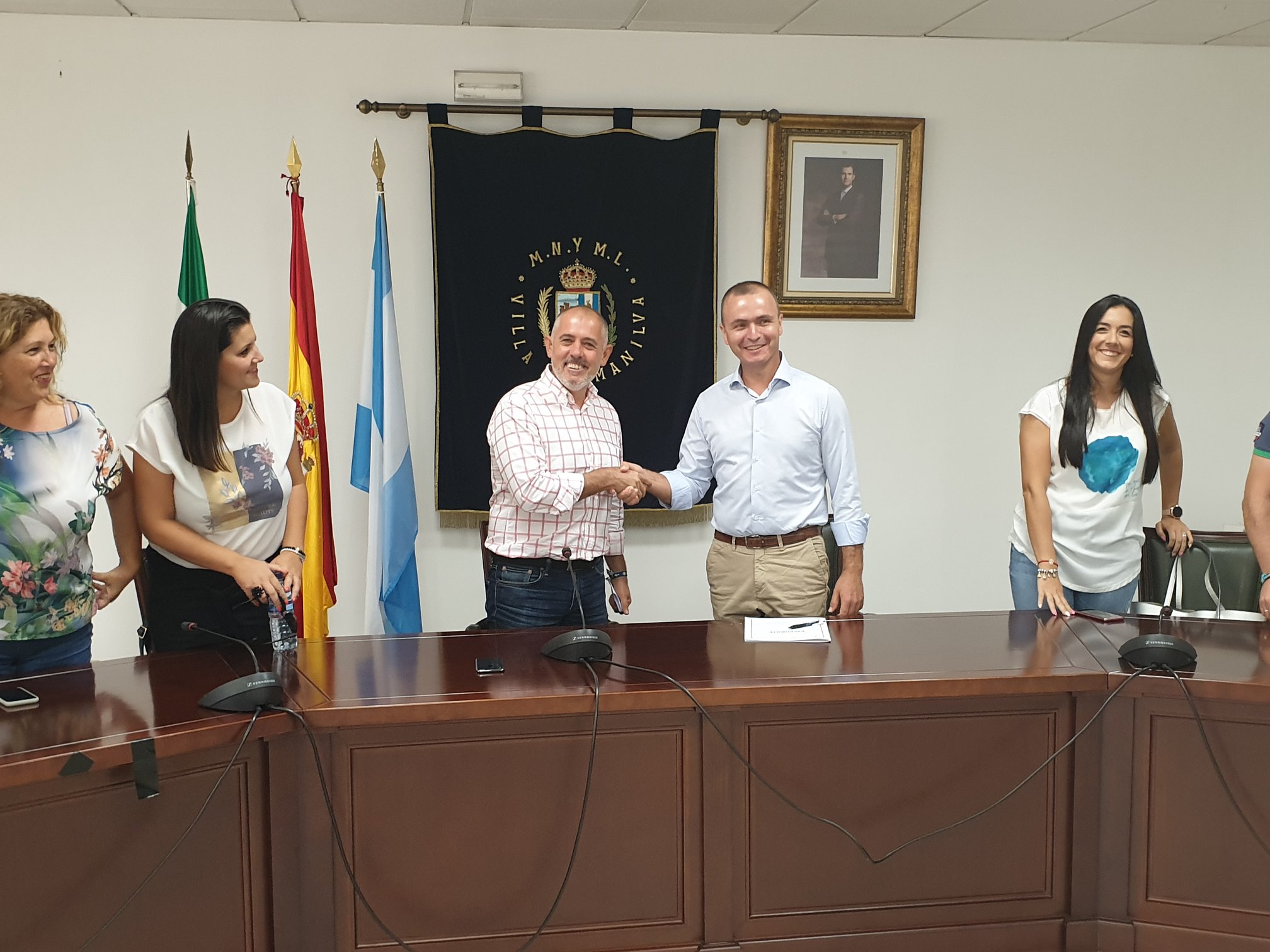 El alcalde de Manilva, Mario Jiménez y los concejales de Agricultura, Francisco Becerra y de Turismo, Eva Galindo, en nombre