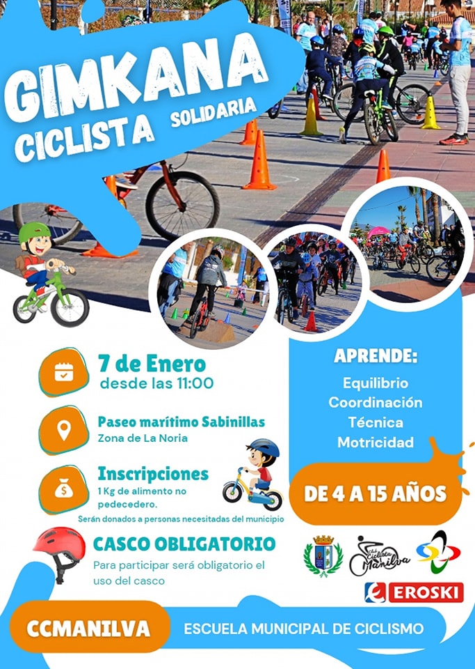 Este sábado 7 de enero se desarrollará la Gymkana Ciclista Solidaria de Manilva desde las 11:00 h. Esta iniciativa del