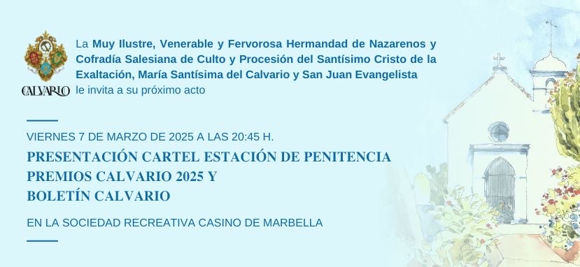 La Hermandad del Calvario de Marbella celebrará el próximo viernes, 7 de marzo, a las 20:45 horas, en la Sociedad