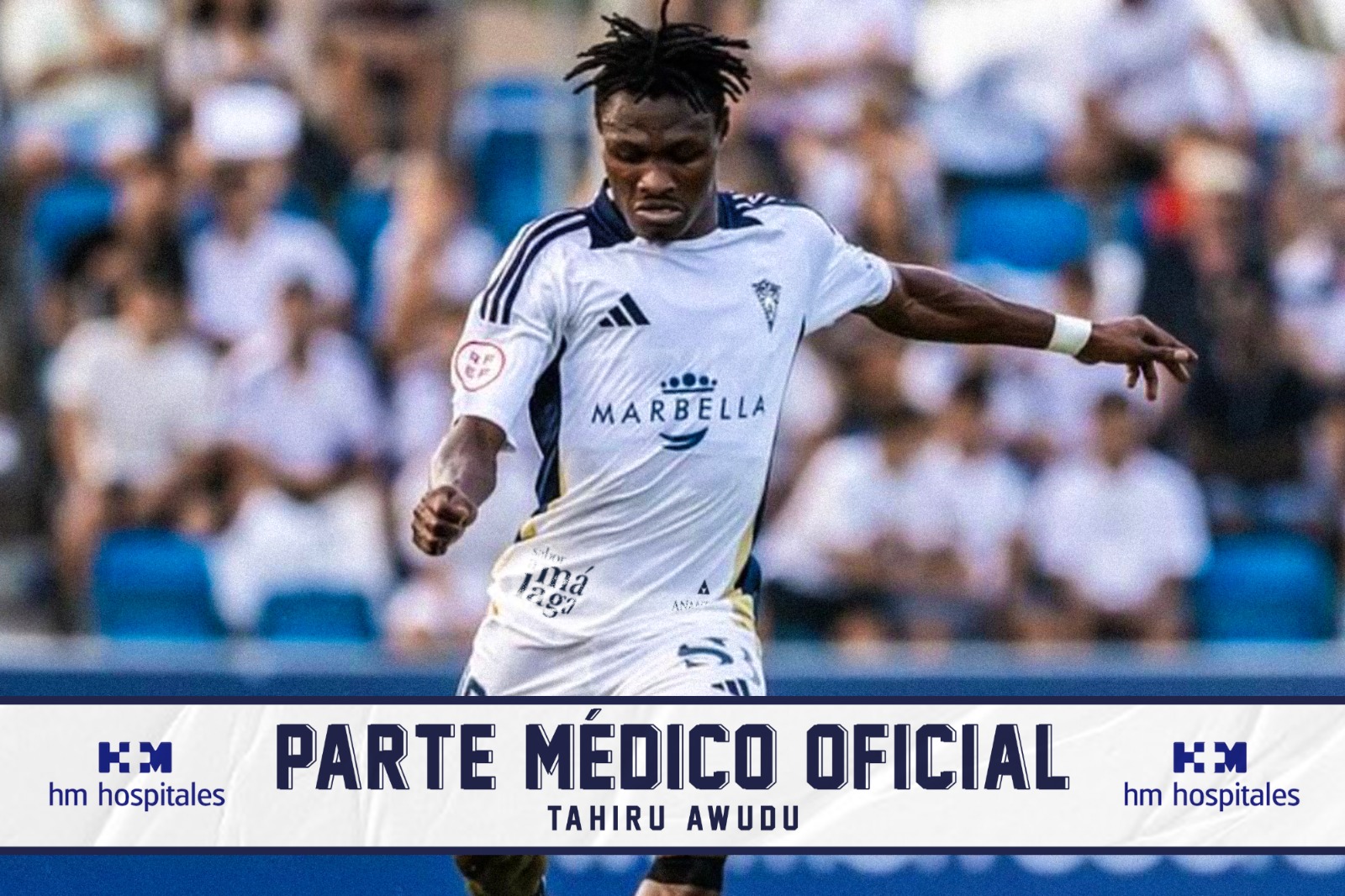 Según informa el Marbella FC, el jugador tahiru Awudu sufre una rotura del menisco externo de la pierna izquierda tras