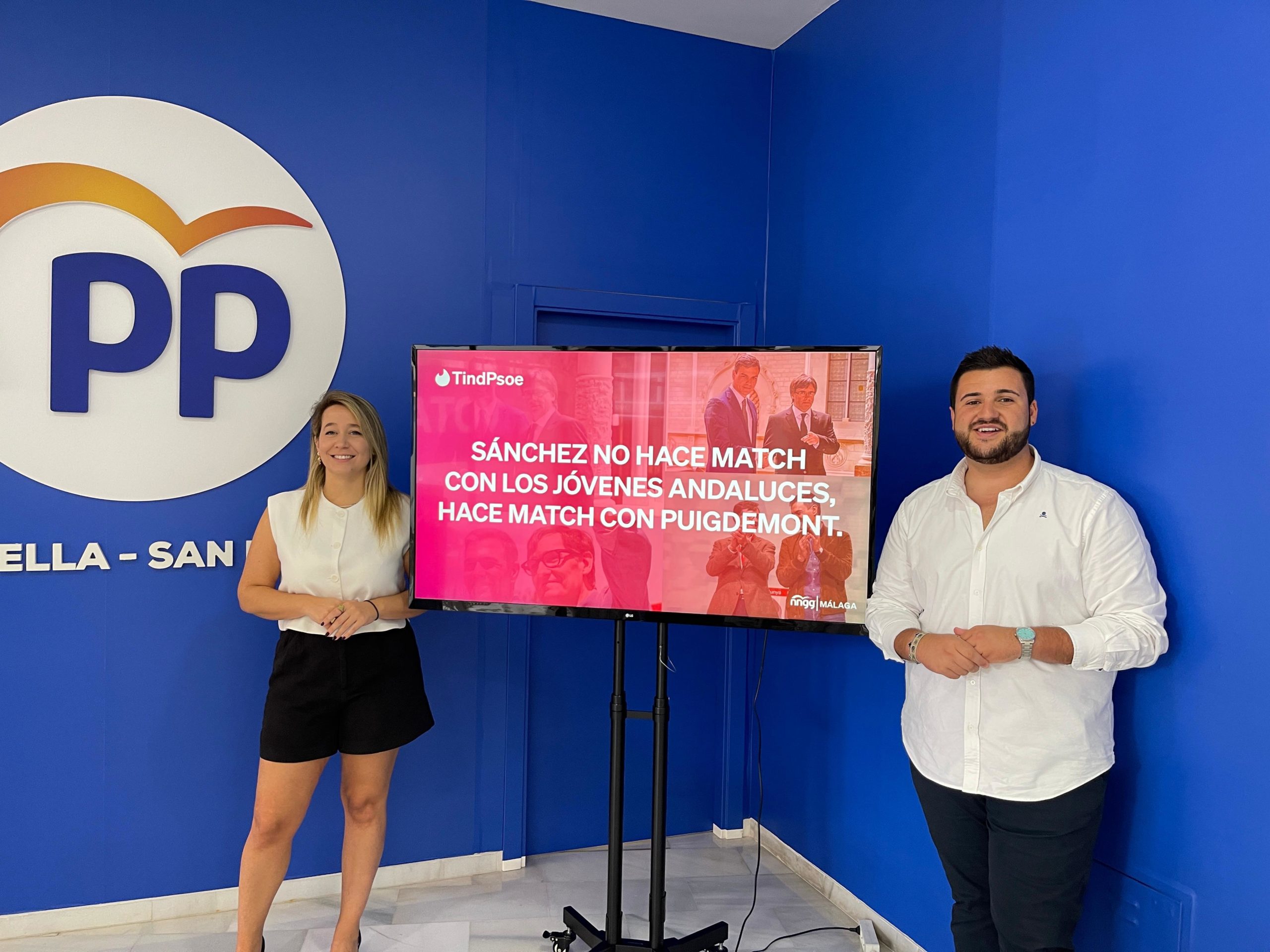 El presidente de NNGG Marbella – San Pedro, Alejandro González, acompañado de la presidenta provincial y parlamentaria andaluza, Jéssica Trujillo,