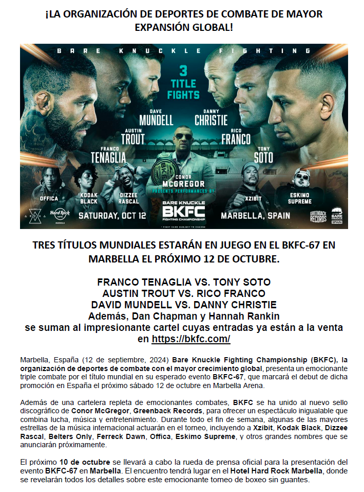 Ya se conoce el cartel de la velada de la BKFC en Marbella del 12 de octubre